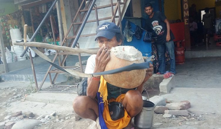 असार १४, काठमाडौ –कञ्चनपुरको झलारी बजारमा एकतारे बजाएर भजन गाउँदै गरेका साधु । साधुले पसलरपसलमा एकतारे बजाएर भजन गाउँदै पैसा मागेर जीविका चलाउने गरेका छन । तस्वीर/,रासस