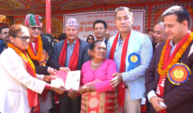 भूमि व्यवस्था, सहकारी तथा गरिबी निवारणमन्त्री बलराम अधिकारीबाट त्यहाँका पुर्जाविहीन नागरिकलाई जग्गाधनी प्रमाणपुर्जा वितरण गरिएको हो । अब बाँकी काम निरन्तर जारी रहेको गाउँपालिकाले जनाएको छ ।