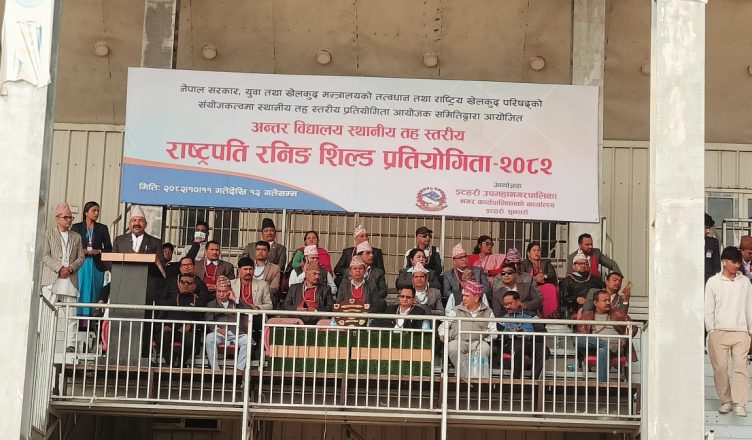 माघ ११, काठमाडौ – इटहरी उपमहानगरपालिकाको आयोजनामा आजदेखि नगरस्तरीय राष्ट्रपति रनिङ शिल्ड प्रतियोगिता सुरु भएको छ । इटहरी रङ्गशालाको खेलमैदानमा सुरु भएको प्रतियोगिताको औपचारिक उद्घाटन इटहरी उपमहानगरपालिकाका प्रमुख हेमकर्ण पौडेलले गरेका हुन ।