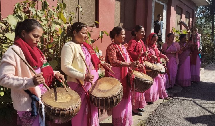 महिला समूहलाई नौमती बाजा बजाउन भ्याइनभ्याई