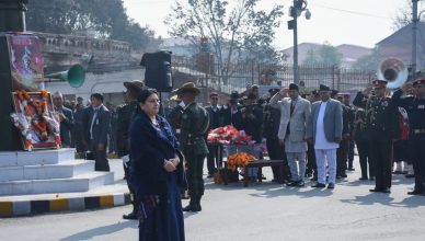 पुस२७, काठमाडौं – राष्ट्रपति विद्या भण्डारीले पृथ्वीनारायण शाहको शालिकमा माल्यार्पण गरेकी छिन् । पृथ्वी जयन्तीको अवसरमा उनले पृथ्वीनारायण शाहको शालिकमा माल्यार्पण गरेकी हुन् । राष्ट्रपति