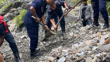३१, काठमाडौं – म्याग्दीको बेनी–दरवाङ सडक अन्तर्गत बेनी नगरपालिका–४ र मङ्गला गाउँपालिका–२ को सिमानामा गएको पहिरो पन्छाउँदै प्रहरीको टोली । तस्वीर : सन्तोष
